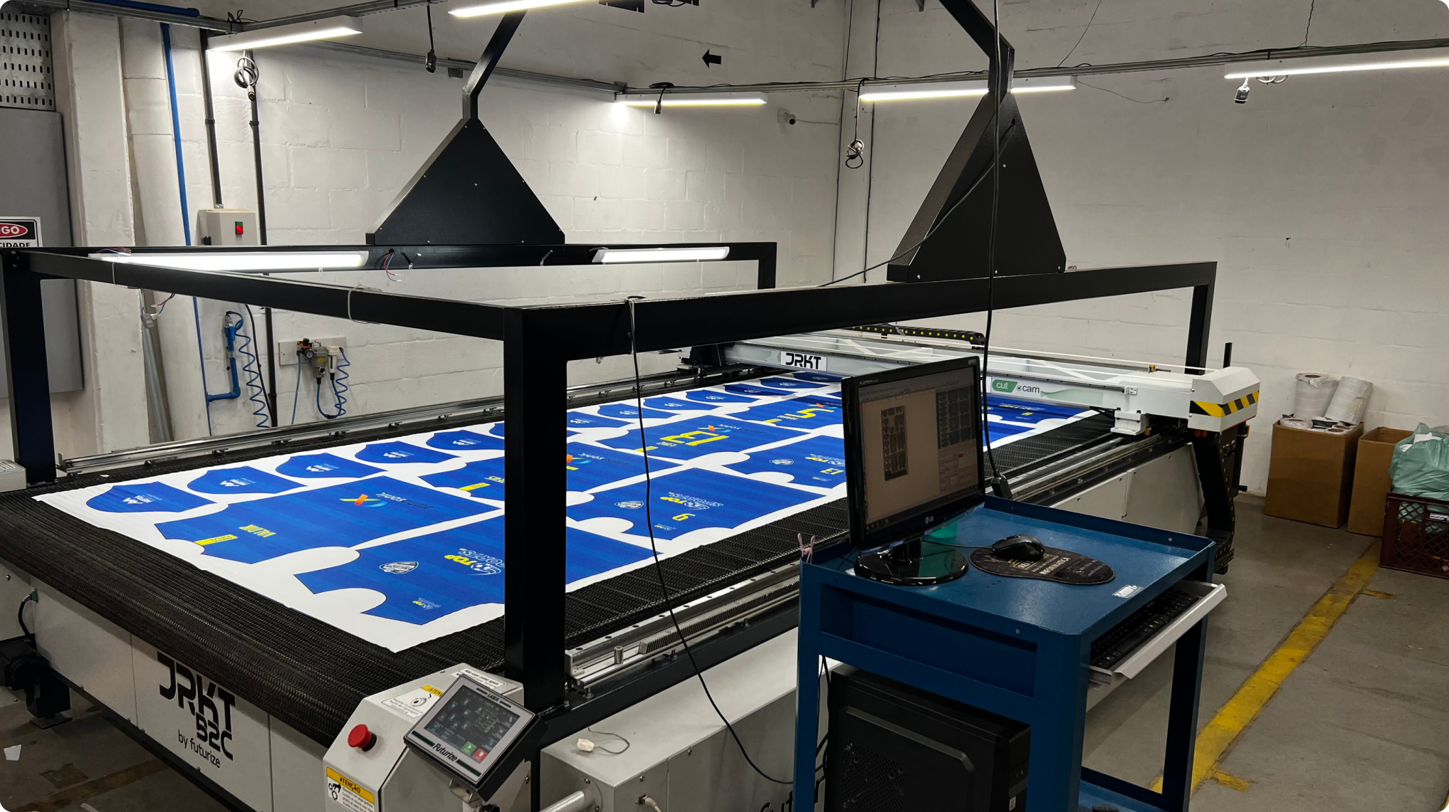 Fomos a 2ª empresa do País a possuir esse equipamento com esta dimensão e o 1º a usar em cortes esportivos!